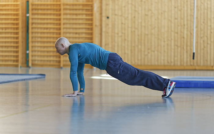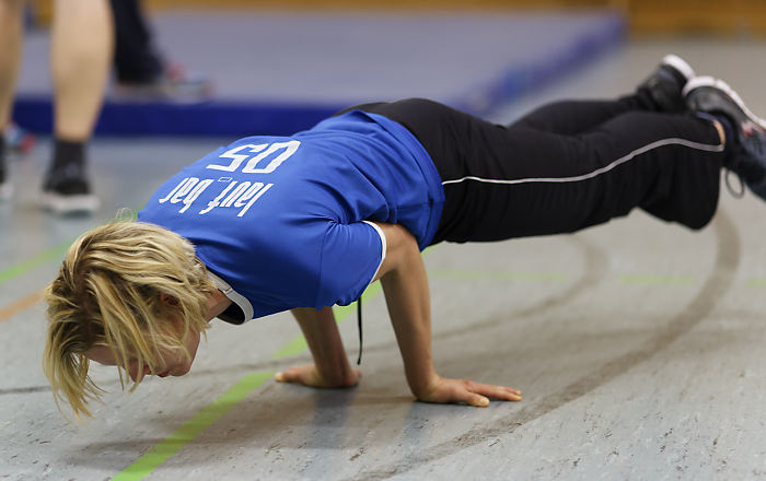 Ausführung: So lange wie möglich auf den Händen verharren. Je nach Fortschritt, können die Beine ausgestreckt oder andere Haltungen eingenommen werden.